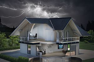 Damage from surge voltages occurs not only from direct lightning strikes, which can cause significant destruction. Serious damage to electronic devices and systems is more commonly caused by surge voltages from lightning strikes within a radius of two kilometres. Ordinary surge voltages from the power grid can also impair the function of electronic devices. The damage caused by surge voltages should not be underestimated. Electrical devices and systems can be destroyed to the point that not just functions such as light control, alarm systems or fire alarms fail; if, for example, important components of an industrial system are also damaged, this can lead to considerable costs due to losses in production. The loss of data due to damaged storage media is also not insignificant, because data is a valuable asset that no insurance can replace. This potential damage can be largely avoided with professionally designed sruge voltage protection. The devices from OBO Bettermann provide basic protection for different types of cables at various installation locations. Retrofitting surge protection devices is also not a problem.