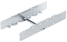 The multifunctional connector can reduce the width of cable ladders in both an asymmetrical and symmetrical form. An asymmetrical reduction, such as with mounting near the wall, can be easily implemented with the multifunctional connector: A strap is simply bent on one side of the side rail. For a symmetrical reduction, the straps on both sides of the side rail are bent in parallel. In both cases, only one multifunctional connection is required ‒ previously, multiple angle connectors needed to be mounted.