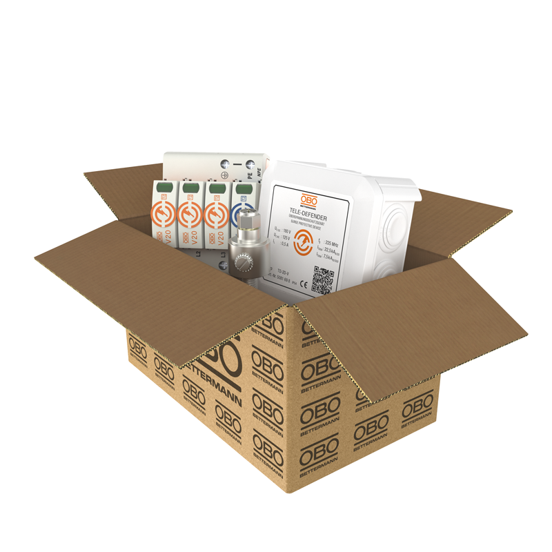 Equipping modern buildings and industrial systems with increasingly sensitive electrical technology requires, now more than ever, professional and reliable surge protection to securely shield devices and data. Surge protection in accordance with VDE 0100-443 has been mandatory since October 2016 in all new or extended buildings and for all new electrical installations. OBO Bettermann now offers two special promotional packages for surge protection, which allow electricians to simultaneously benefit from an excellent price and provide basic protection both in residential buildings and in industrial systems.