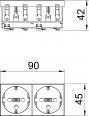 Protective contact socket, double 0°, encoded version, with increased touch protection, with screwless terminals, 2-pin, 16 A, 250 V~, with connection terminals according to IEC 60884-1.