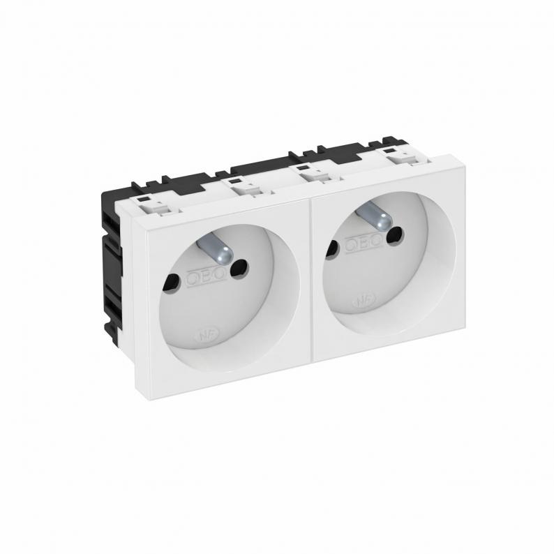 Socket with earthing pin, double 0°, with increased touch protection, with screwless terminals, 2-pin, 16 A, 250 V~, with connection terminals to IEC 60884-1.