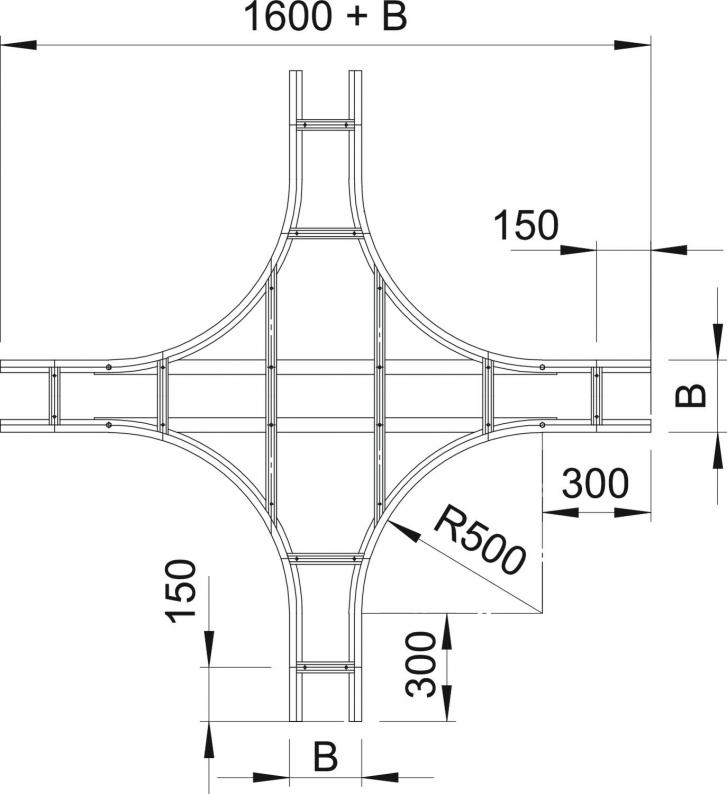 Horizontal cross-over for all wide span cable ladders of 110 mm side height.