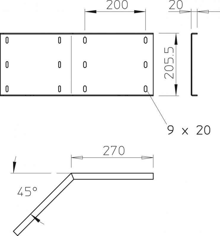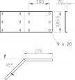 45° angle connector, horizontal, for wide span cable ladders of 200 mm side height.