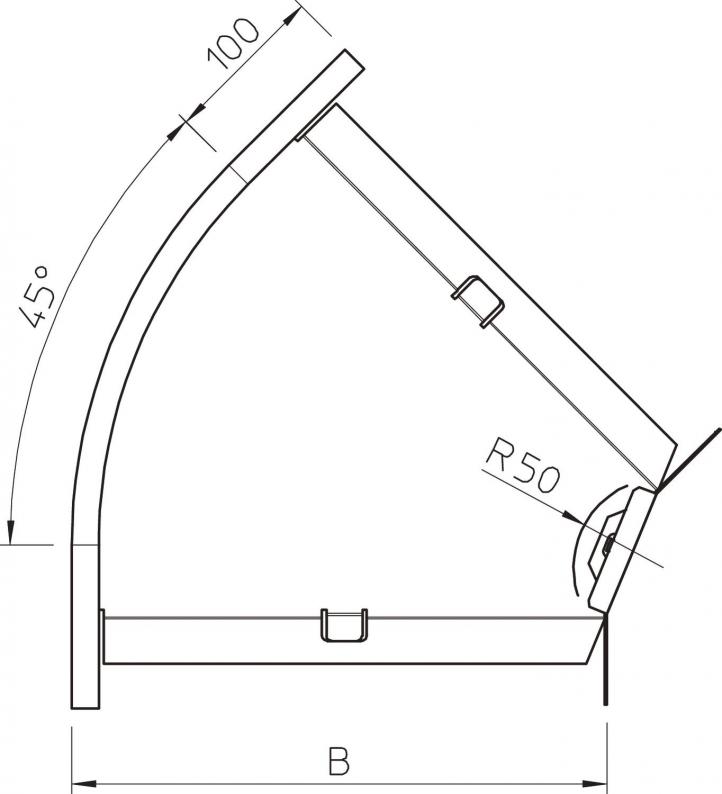 45° bend, horizontal, for all cable tray types of 60 mm side height.