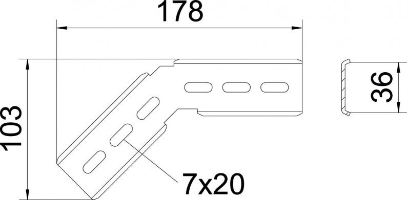 45° installation profile, vertical, for C mesh cable tray and GR-Magic® mesh cable tray with a side height of 55 mm.