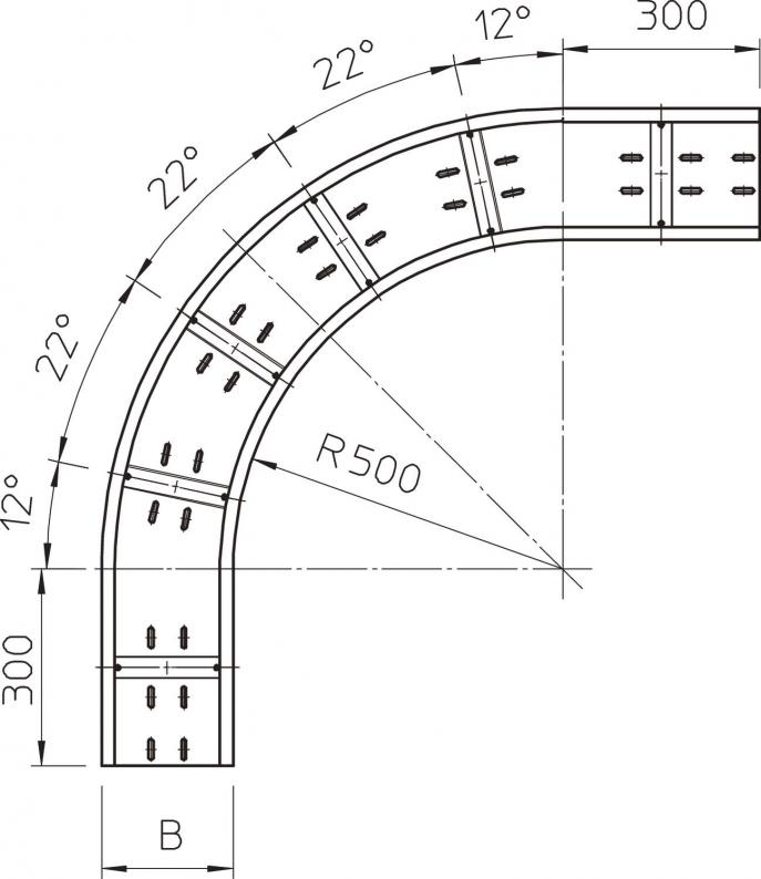 90° bend, horizontal, for all wide span cable trays of 160 mm side height.