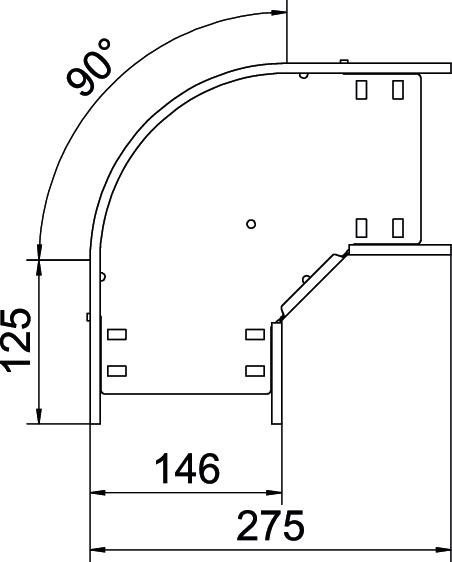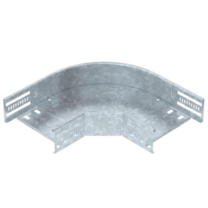 90° bend for the creation of a horizontal branch, fitting for lock and screw-on cable trays of side height 60 mm. Screwless mounting with double clamps or screw connection with FRS truss-head screws and M6 combination nuts. Can be used indoors and outdoors. Fastening material must be ordered separately.