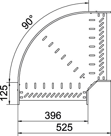 90° bend for the creation of a horizontal branch, fitting for lock and screw-on cable trays of side height 85 mm. Screwless mounting with double clamps or screw connection with FRS truss-head screws and M6 combination nuts. Can be used in indoor areas. Fastening material must be ordered separately.
