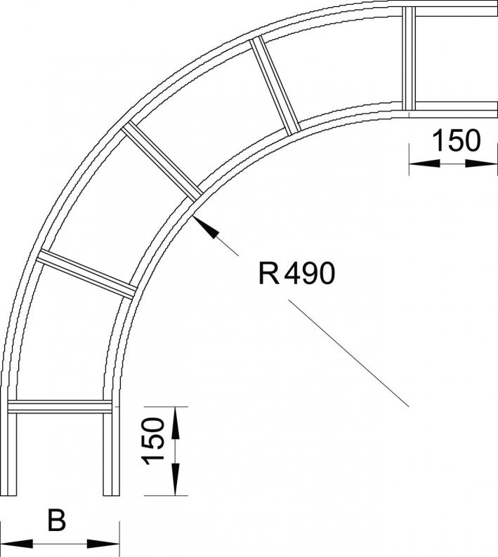 90° bend, horizontal, for cable ladders with VS rungs and a side height of 60 mm.