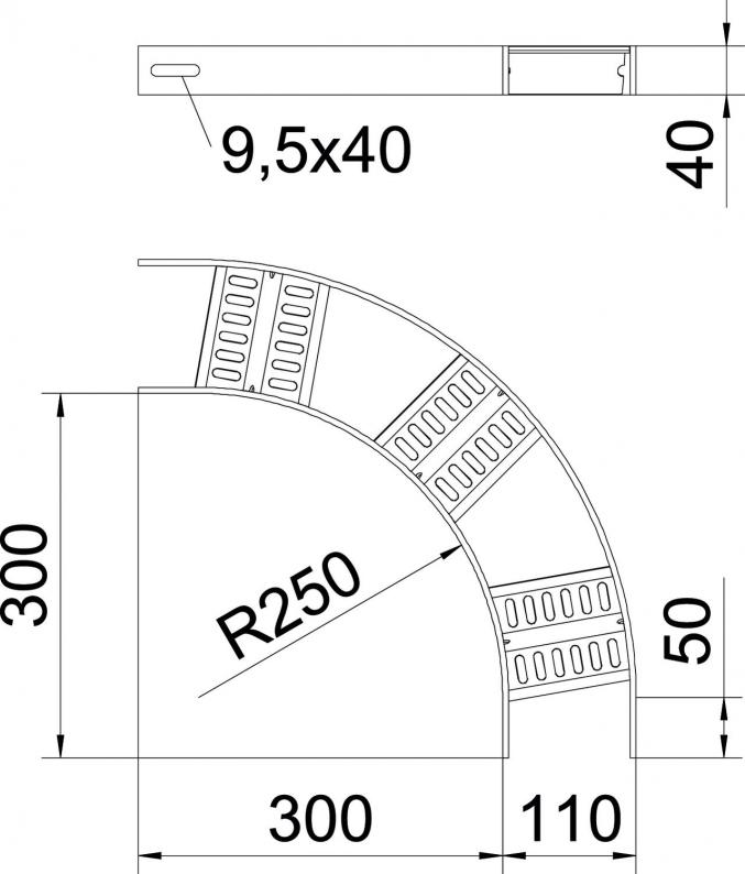 90° bend for shipbuilding cable ladders, type SLZ, with side height of 40 mm with welded, perforated Z rungs.