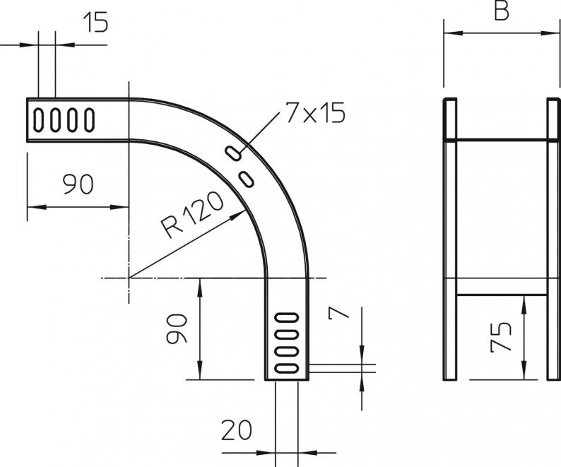 90° vertical bend, falling, for all cable tray types of 35 mm side height.