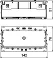Front locking accessory mounting box for standard switch ranges for the installation of two individual installation devices or a multiple protective contact socket. With unfolding, and also removable, base for time-saving cable connection and with feed openings for cable diameters of up to 14 mm. Halogen-free version.
