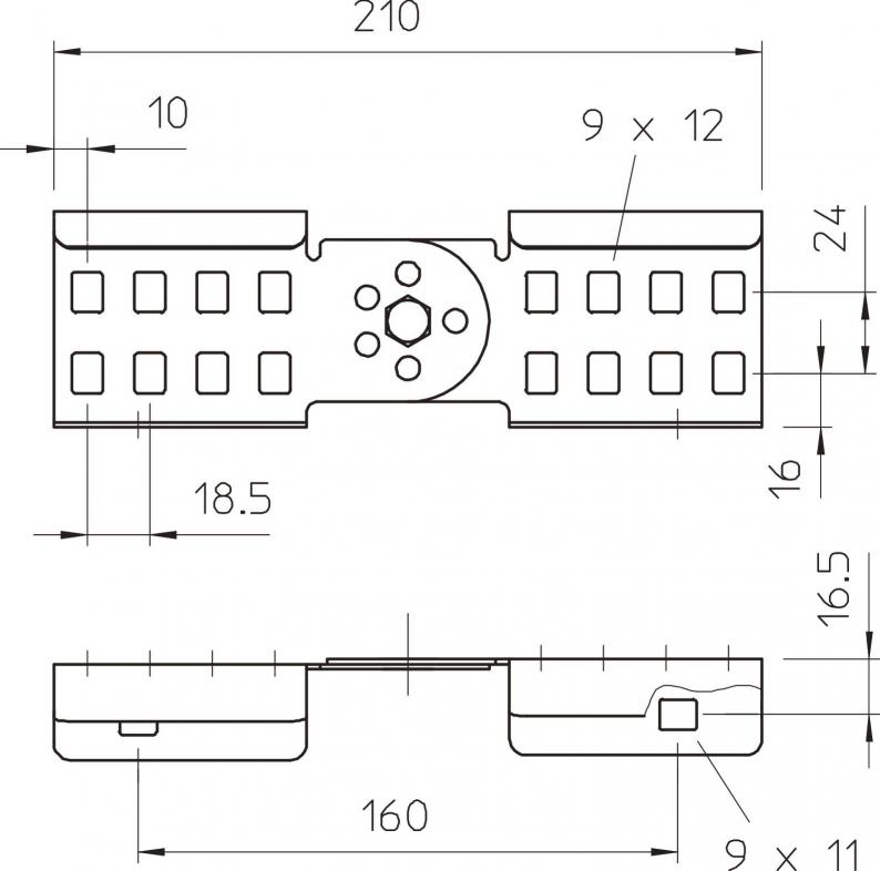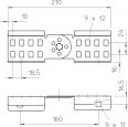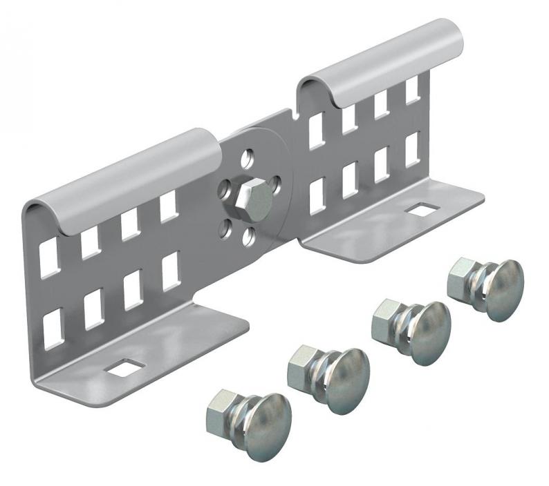 Adjustable connector as external connector to join cable ladders and fittings with a side height of 60 mm and continuous rail perforation. Angle can be adjusted vertically.