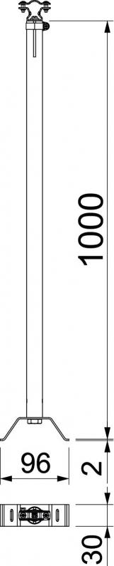 Insulated spacer for cables and air-termination rods for insulated air-termination devices, to maintain the separation distance. Infinitely adjustable distance range. For mounting with tightening strap on pipes with Ø ≤ 600 mm. Including tension jack.