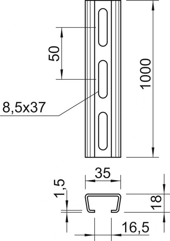 AML3518 anchor rail, slot 16.5 mm, A2, perforated