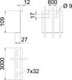 Barrier strip for the BKRS walkable cable tray system. Fastening with truss-head bolts M6 x 12 in the base perforation.