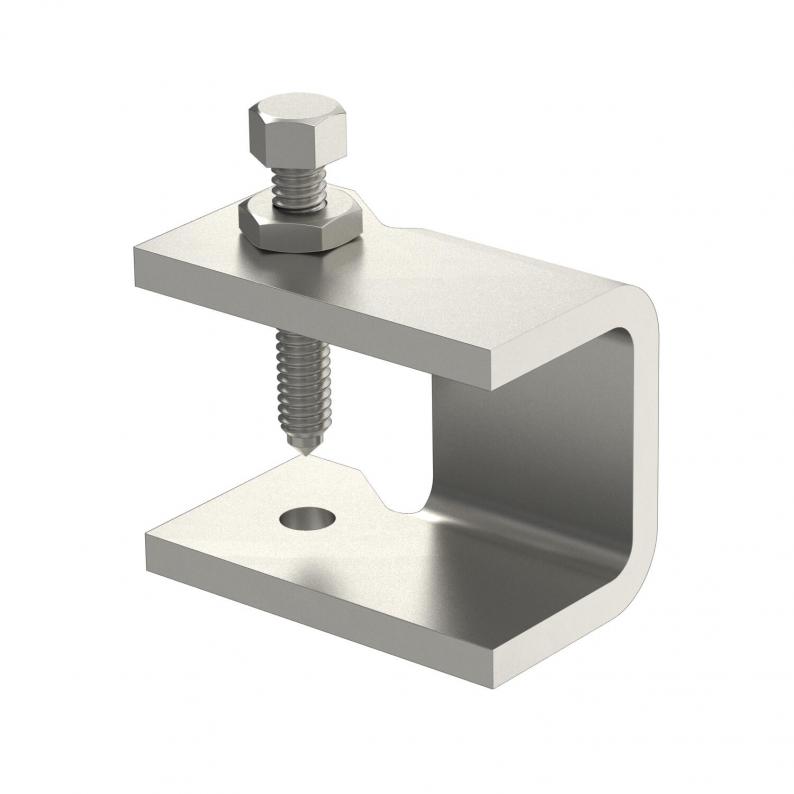 Beam clamp for fastening cable ladders to steel girders.
