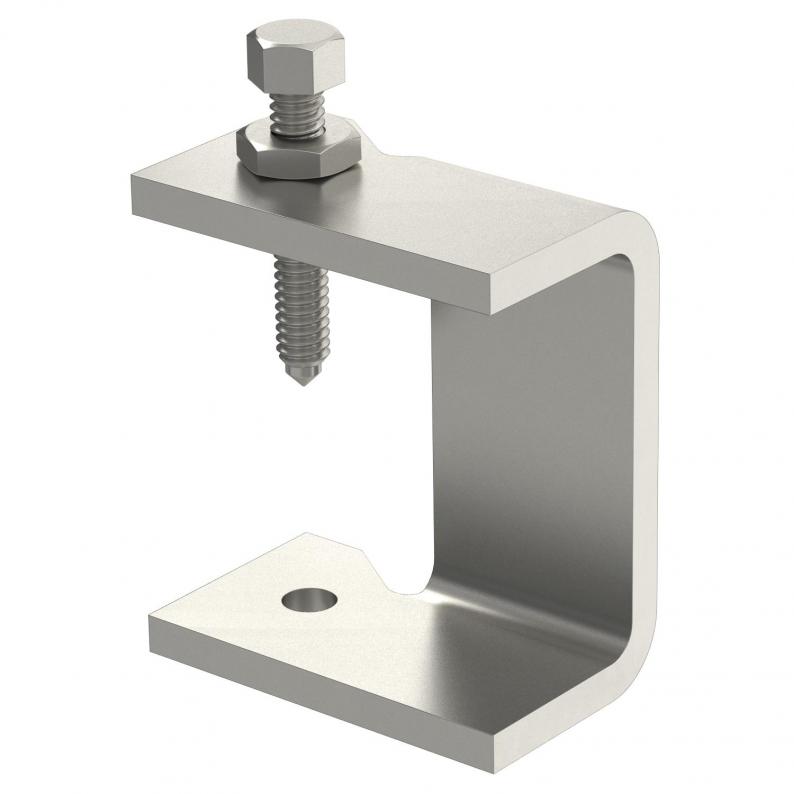 Beam clamp for fastening cable ladders to steel girders.