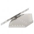 Angle-adjustable bend for the creation of a horizontal branch, fitting for lock and screw-on cable trays of side height 60 mm. Adjustable angle 0–90°. Screwless mounting with double clamps or screw connection with FRS truss-head screws and M6 combination nuts. Can be used indoors and outdoors. Fastening material must be ordered separately.