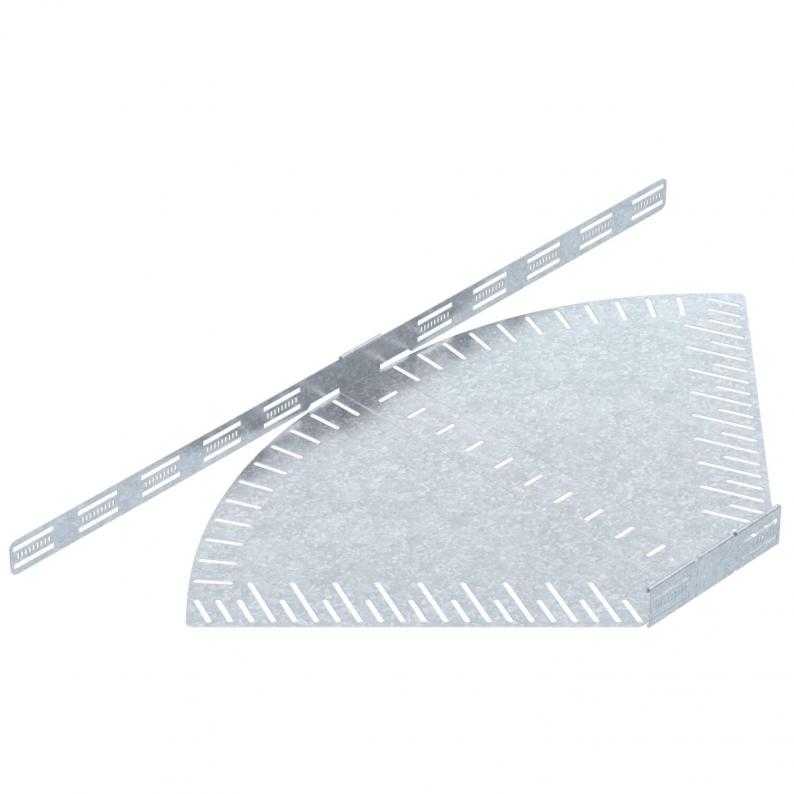 Angle-adjustable bend for the creation of a horizontal branch, fitting for lock and screw-on cable trays of side height 60 mm. Adjustable angle 0–90°. Screwless mounting with double clamps or screw connection with FRS truss-head screws and M6 combination nuts. Can be used indoors and outdoors. Fastening material must be ordered separately.