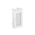 Blanking cover with labelling panel, suited for labelling devices in Rapid 45 device installation trunking systems and ISS service poles with a 45 mm system opening.