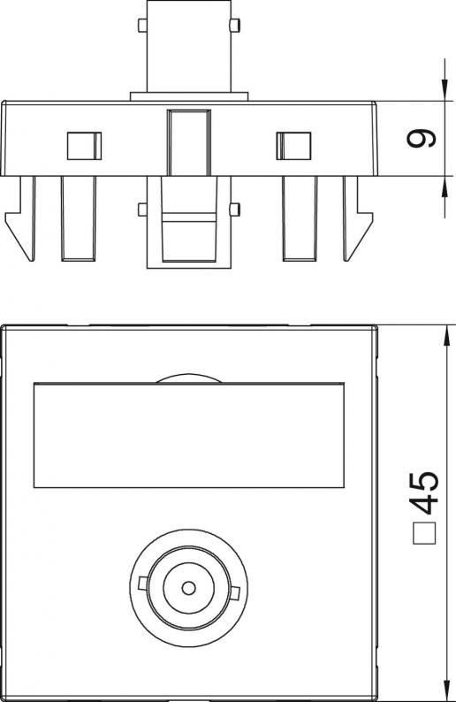 Multimedia support with one BNC connection socket, straight cable outlet, with labelling panel, BNC coupling, socket-socket version. Support plate with locking fastening, suitable for horizontal and vertical installation in the system environment.
