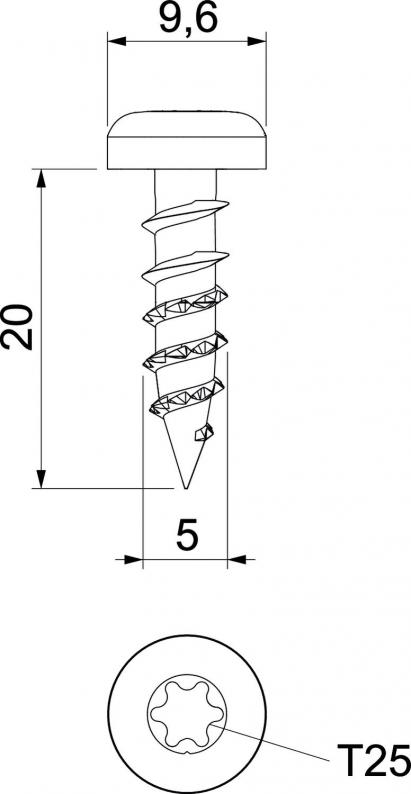 Bolt with special milling ribs for PYROLINE® Con D and PYROLINE® Con S fire protection ducts, to fasten cable clips in the duct. Required plate thickness: At least 20 mm.