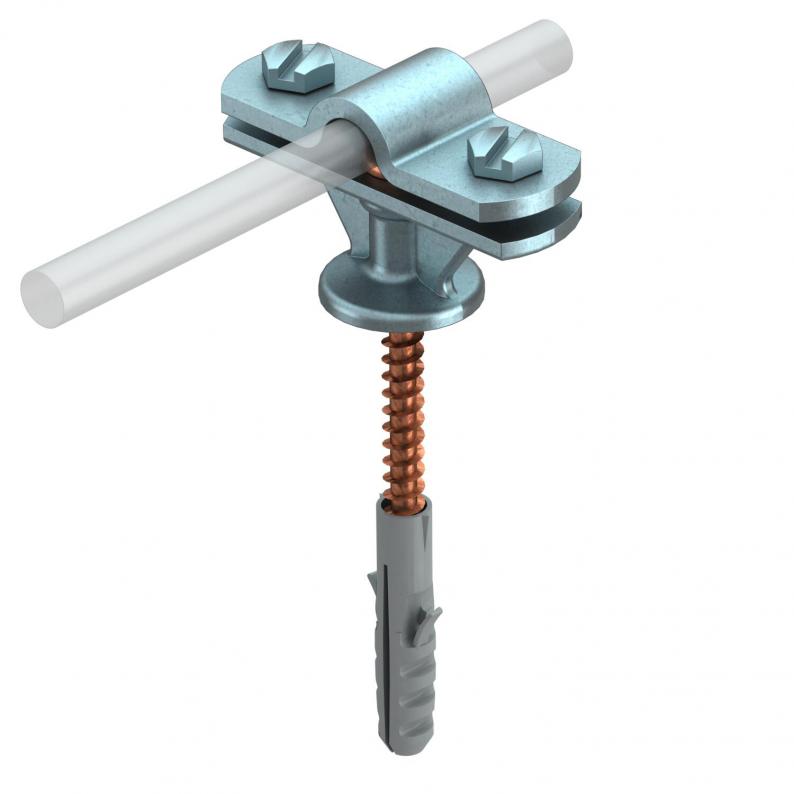 Cable bracket Rd 8–10 mm with wood screw, plastic anchor