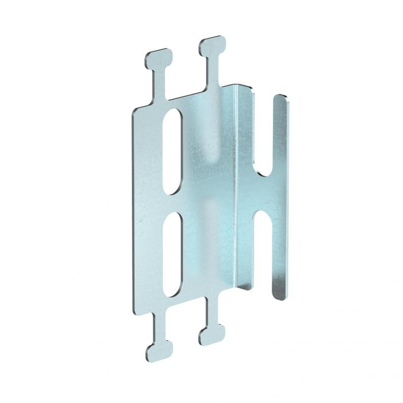 Universal cable bracket for the vertical installation of cables in PYROLINE® Con fire protection ducts made of fibreglass-reinforced, lightweight concrete, as well as PYROLINE® Rapid made of sheet steel with an internal coating. The holders are plugged over the head of the loosened fastening screw and then screwed tight to it. The cables can be fastened using cable ties on the lugs or in the slots of the holder. This safely supports the cable weight. Plan at least two cable brackets per metre during installation.