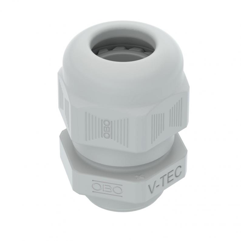 Cable gland with short metric connection thread in cap nut design, suitable for junction boxes with metric connection thread. Strain relief, torsion protection and tightness over the whole clamping area. Sealing ring made of polychloroprene/acrylonitrile butadiene rubber. Moulded shaped sealing lip on intermediate support, thus no connection thread sealing ring required, VDE-tested to DIN EN 50262, protection rating IP68 at 5 bar 1 h. Temperature range –20 °C to +65 °C.