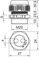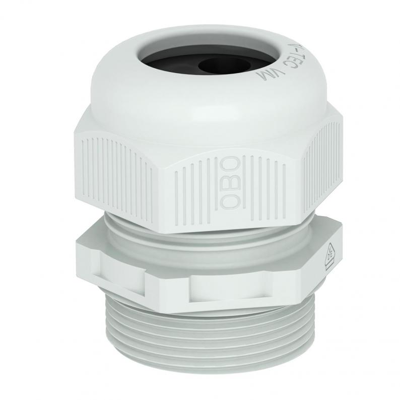 Cable gland with metric connection thread in cap nut design, suitable for junction boxes, housings, distributor cabinets in private and industrial areas. With strain relief and integrated sealing lip, tested according to DIN EN 62444. Protection class IP68. Can be used between –20°C and +65°C.