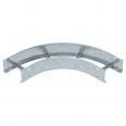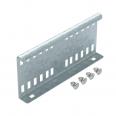 Cable ladder with perforated side rail of side height 110 mm with riveted C profile rungs, open in an upwards direction.