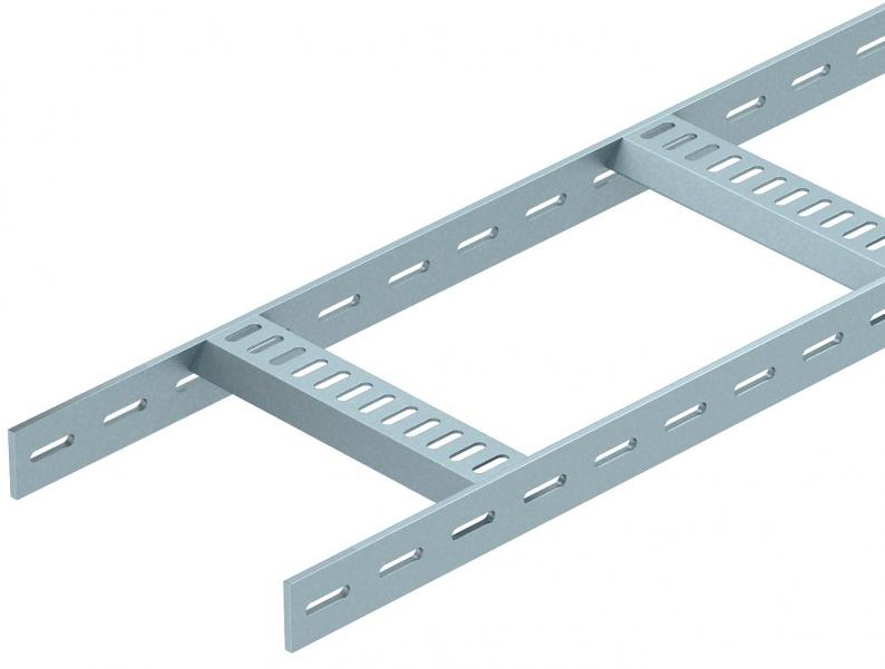 Shipbuilding cable ladder with perforated side rail of side height 40 mm with welded, perforated trapezoidal rungs which open in a downwards direction. Load tested according to IEC in conjunction with connector, type SLV.