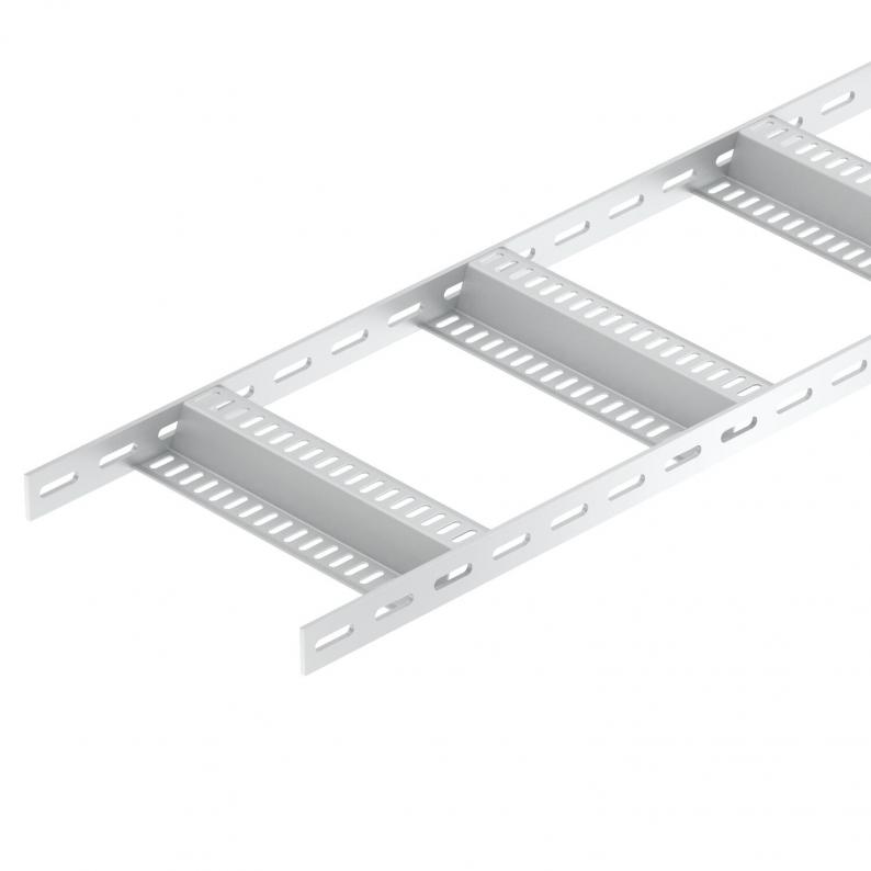 Shipbuilding cable ladder with perforated side rail of side height 40 mm with welded, perforated Z rungs.