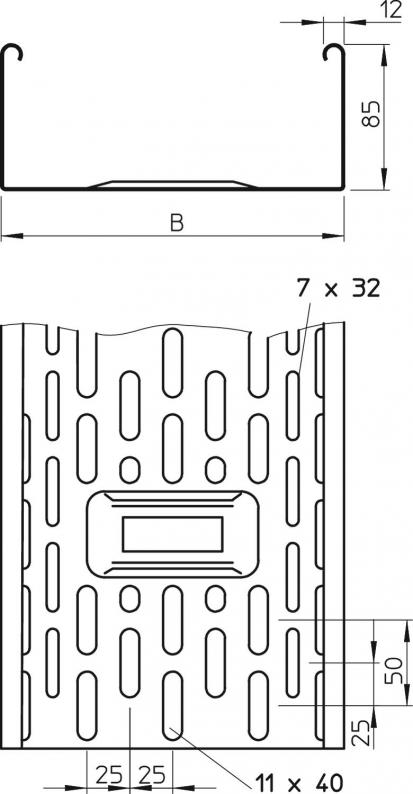 DKS 85 = perforated cable tray system with 85 mm side height.