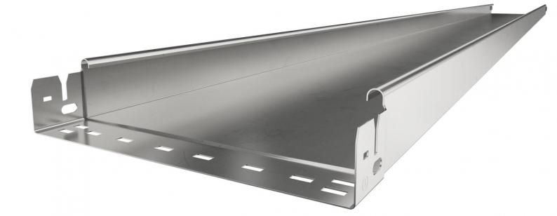 Unperforated cable tray with integrated quick fastening system. The usable length of the cable tray is 3,000 mm.