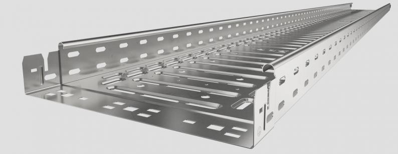 The cable tray has continuous side perforations of 7 x 20 mm for the installation of additional connection and mounting components.