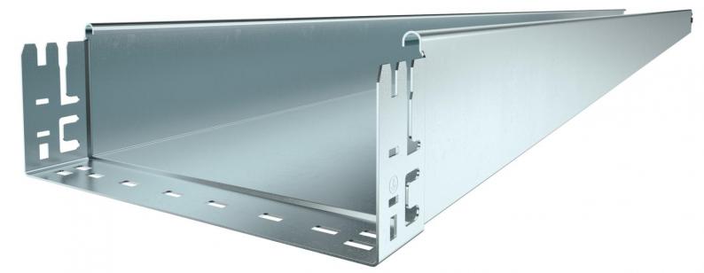 Unperforated cable tray with integrated quick fastening system. The usable length of the cable tray is 3,000 mm.