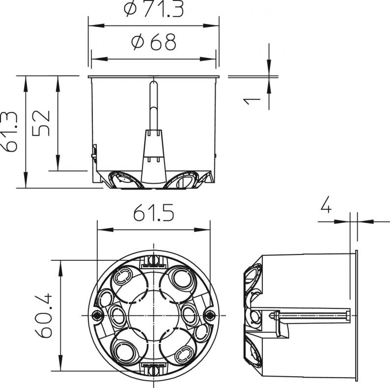Rüzgar geçirmez tipte cihaz/bağlantı kutusu. DIN 49073-1'e uygun ölçüler, 7-35 mm plaka kalınlığı için. Standart kombinasyon aralığı 71 mm,Cihaz kutuları ile Cihaz-bağlantı kutuları arasındaki bir kombinasyonda bağlantı elemanları sayesinde kablo döşeme imkanı,