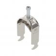Clamp clip with hammerhead foot, metal pressure sleeve with rounded edges to protect the cable. For vertical and horizontal mounting of 1 single cable on a C-profile rail. For a slot width 16–17 mm. With 1-start screw thread on pressure sleeve, universal hexagonal screw head WAF10, with slot and cross recess. Suitable for assembly indoors and outdoors. We recommend the use of a counter-sleeve.