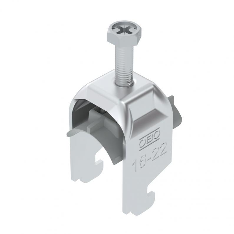 Clamp clip with N-foot, plastic pressure sleeve made of polypropylene. For vertical and horizontal mounting of 1 single cable on a C-profile rail. For slot width 11‒12 mm With 1-start screw thread on pressure sleeve, universal hexagonal screw head WAF10, with slot and cross recess. Suitable for assembly indoors and outdoors. We recommend the use of a counter-sleeve.