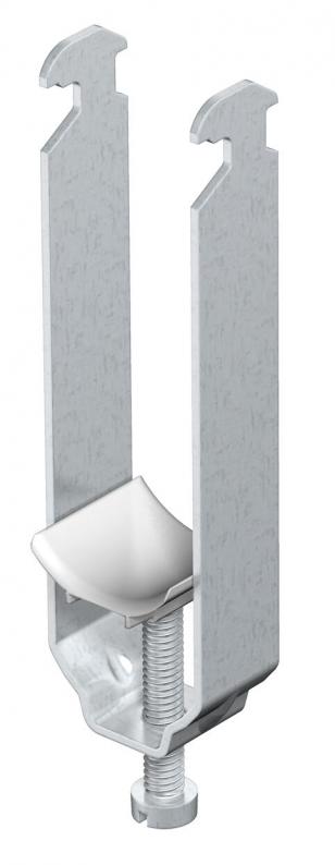 Suitable for all C profile rails with 16–17 mm slot width; aluminium ALMg 3 clamp and bolt, polypropylene pressure sleeve, halogen-free, colour light grey RAL 7035.