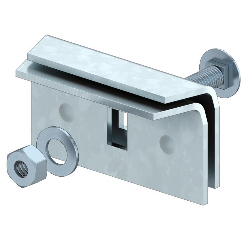 Clamp connector for straight connection of cable trays, according to the marine standard, with a side height of 15 mm.