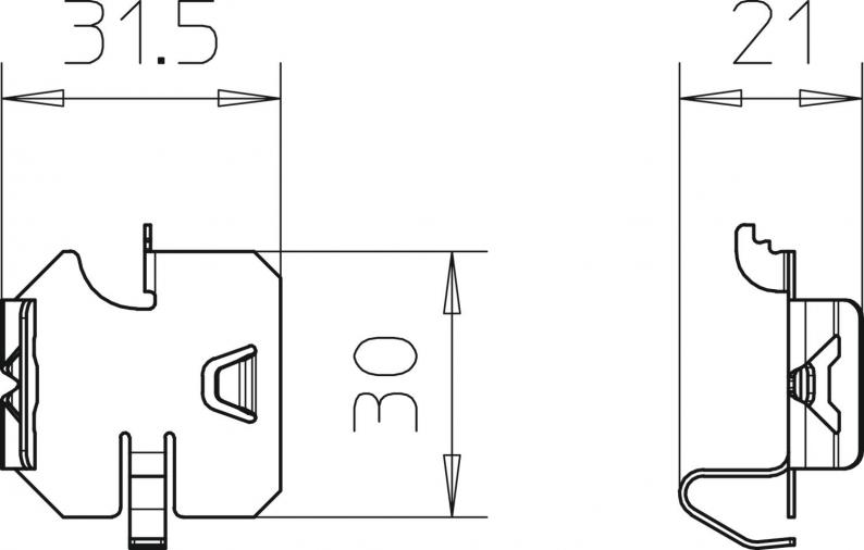 Clamping piece for screwless fastening of separating retainers in the cable tray types RKSM, MKS and SKS.