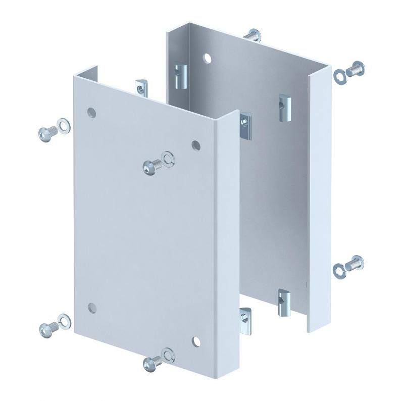 Collision guard as mechanical protection of the ISS industrial pole in the bottom area. The scope of delivery comprises of two U-shaped protection profiles made from 3 mm sheet steel and eight fastening screws with slot nuts to install on the pole profile.