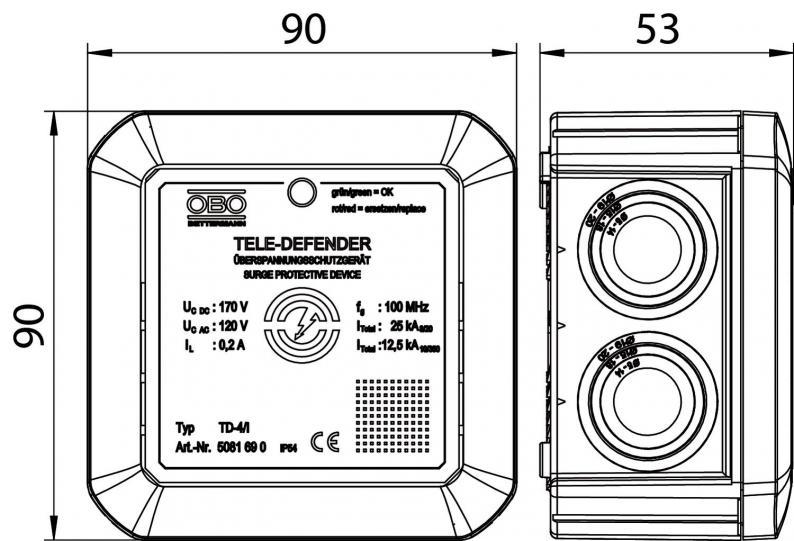 | Impulse durability wire-earth | C2: 18 kV / 9 kA (8/20µs) |