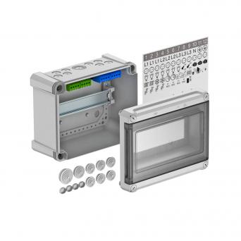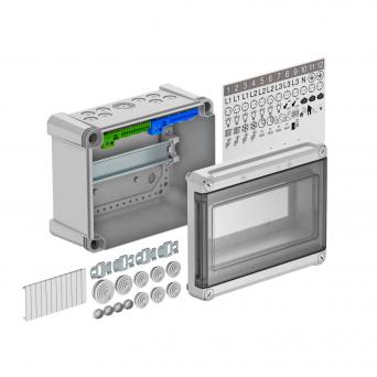 Distribution box, 9 division units, with terminal strip, polycarbonate