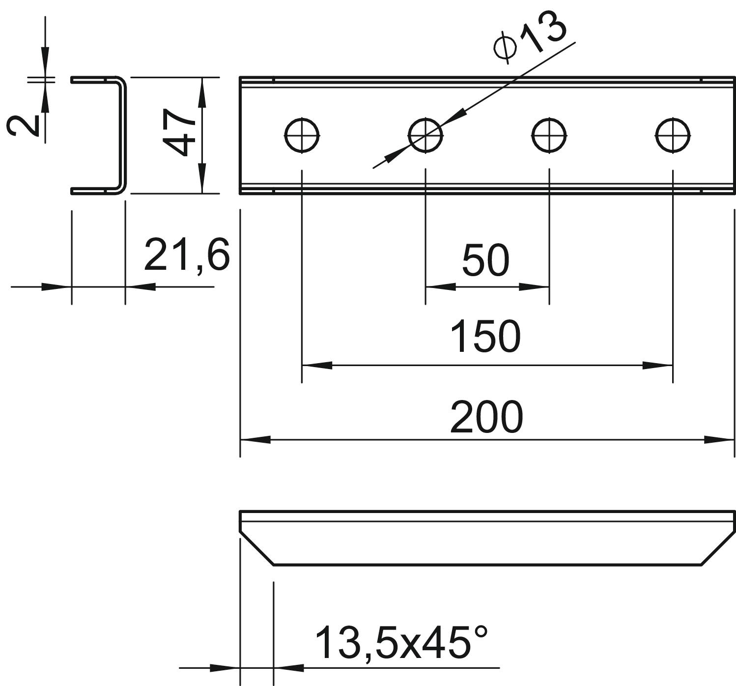 41 x 41 mm ve 41 x 21 mm profil raylarının boyuna doğrultuda bağlanması için 4 delikli dıştan kavrayıcı bağlantı elemanı