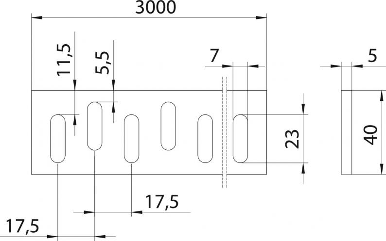 Flat iron profile with double, side-offset slot row to create suspension and support constructions.