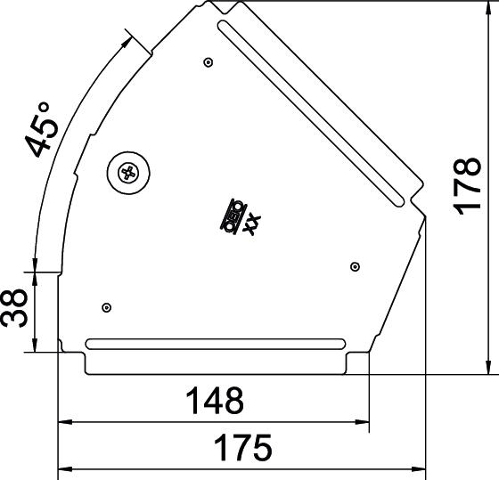 Cover for 45° bend fitting for lockable and screw-on cable trays in indoor areas, to protect cables against damage and soiling. Fastening with pre-mounted sash lock and through attachment of the section cover. Suitable for all side heights.